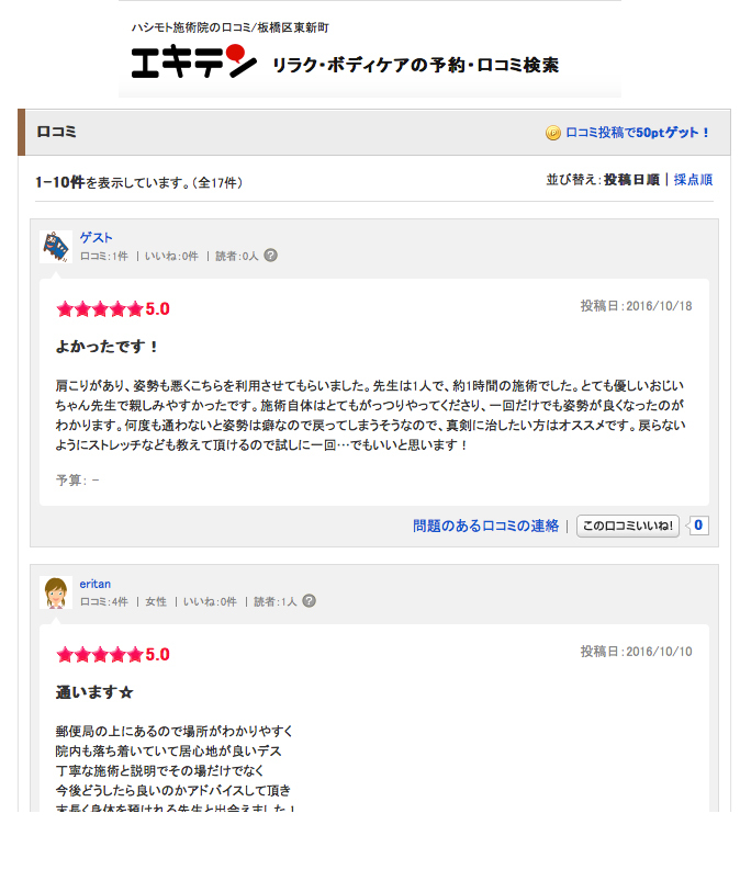 デスクワークが中心で肩こりがひどかったのですが、施術いただき体が楽になりました。原因が肩だけではなく、背骨のゆがみにあることを教えていただき、先生の知識に驚かされるとともに、丁寧に施術くだしましたので、信頼できる先生だと思います。ありがとうございました。